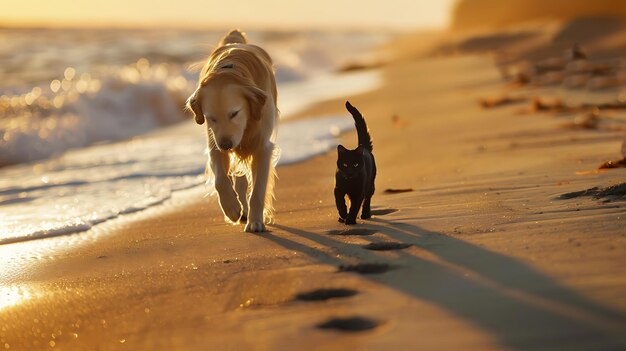 Cat and dog in a pink bath with bubbles on a beige background